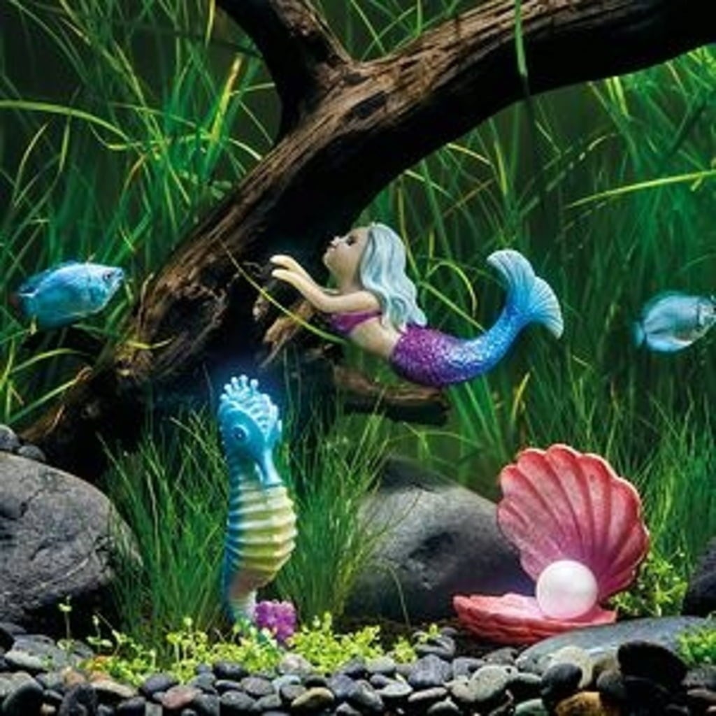 Die Meerjungfrau eignet sich bestens für Süßwasseraquarien und begeistert durch ihren schimmernden Körper das liebevoll gestaltete Design.