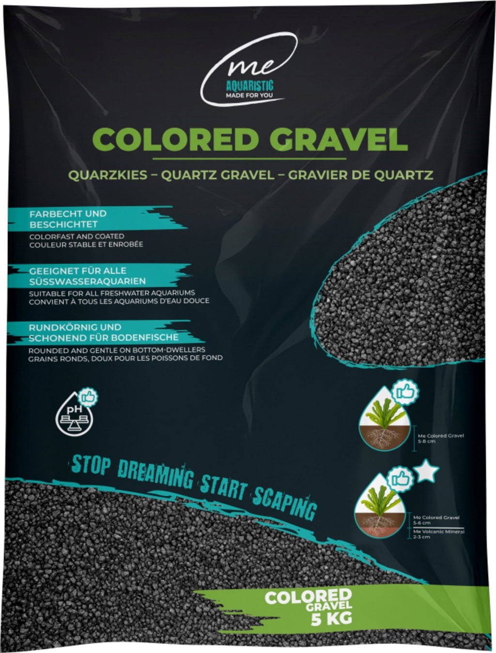 Verleihe deinem Süßwasseraquarium ein warmes und natürliches Design! Mit dem Me Colored Gravel in elegantem Schwarz schaffst du eine optisch ansprechende und gleichzeitig stabile Basis für deine Unterwasserwelt.