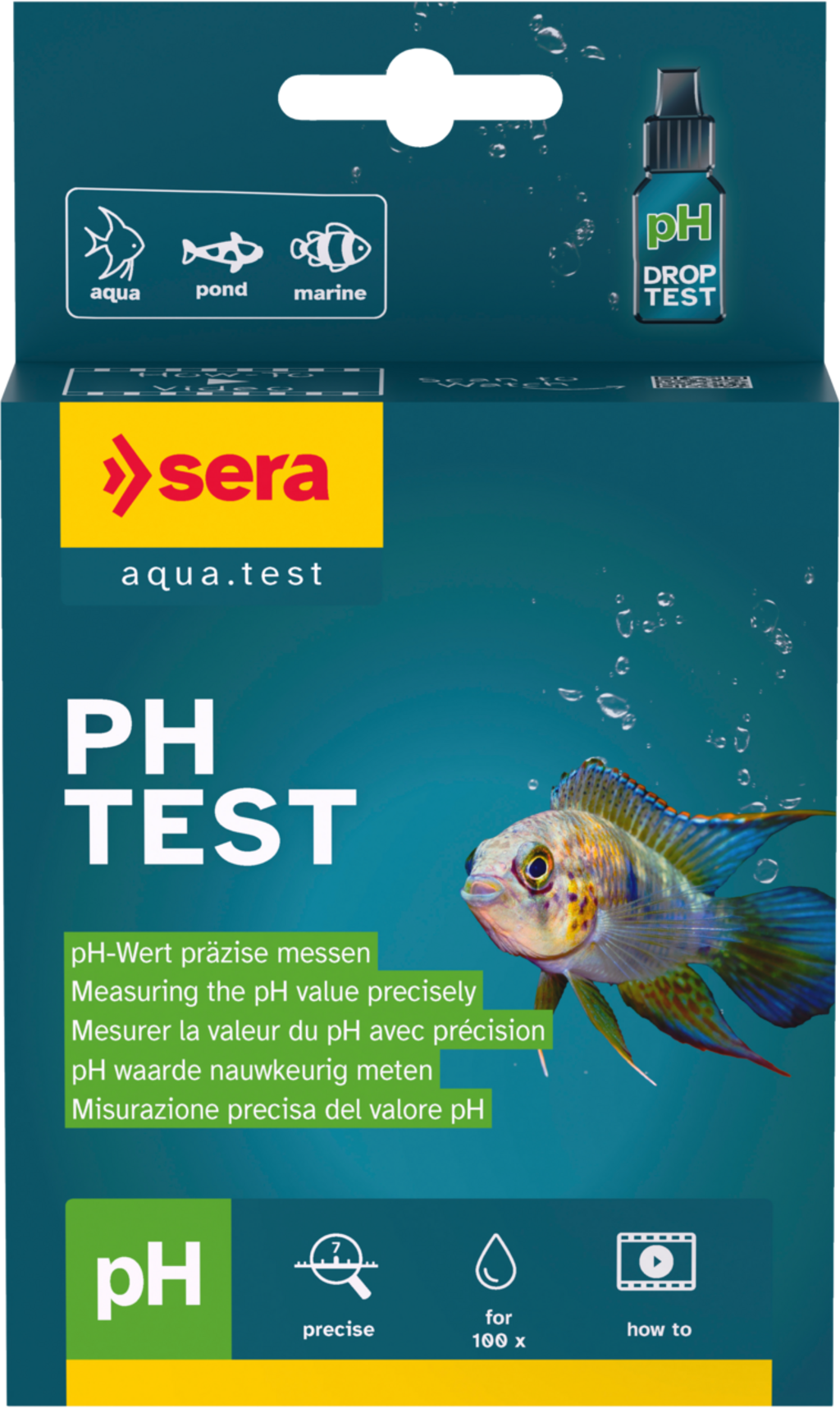Der sera pH-Test ist ein Wassertest zur Überprüfung des pH-Wertes im Süß- und Meerwasseraquarium, sowie im Gartenteich.
