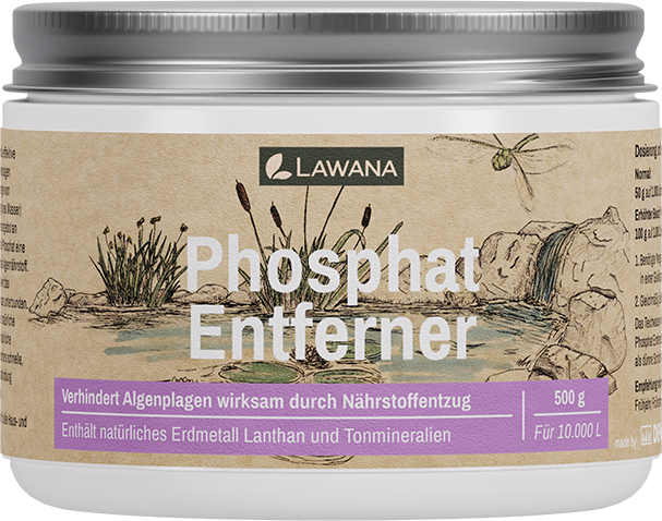 Mit dem Lawana Phosphat Entferner entziehst du deinem Teich überschüssige Nährstoffe auf Basis natürlicher Erdmetalle und Tonmineralien. Das enthaltene Lanthan bindet Phosphate sowohl im freien Wasser als auch direkt am Boden dauerhaft, sodass diese nicht wieder in Lösung gehen können.