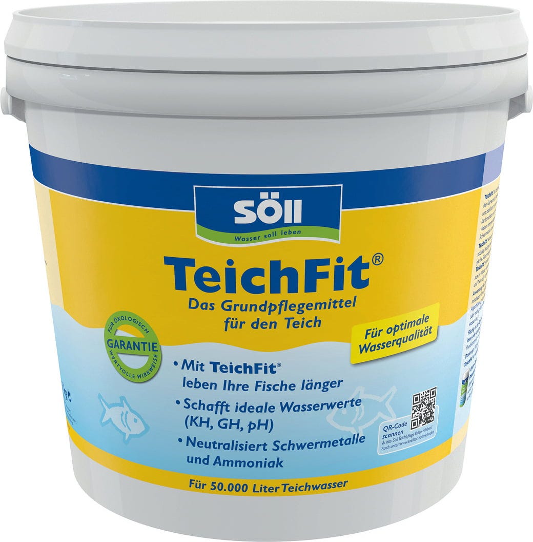 TeichFit® von Söll ist ein Grundpflegemittel für Gartenteiche mit Tierbesatz. Es verbessert bzw. erhält die Wasserqualität - zur Freude der gesamten Flora und Fauna eines Habitats! Dank natürlicher Inhaltsstoffe, die von Natur aus auch im Wasser enthalten sind, greift TeichFit weder Pumpen noch Leitungen an und bleibt für Mensch wie Tier völlig unbedenklich. Dafür wird das ökologische Gleichgewicht in Windeseile stabilisiert und gestärkt, die Lebensdauer von Fisch und Co. erhöht sich. Alle Vorteile auf einen Blick: