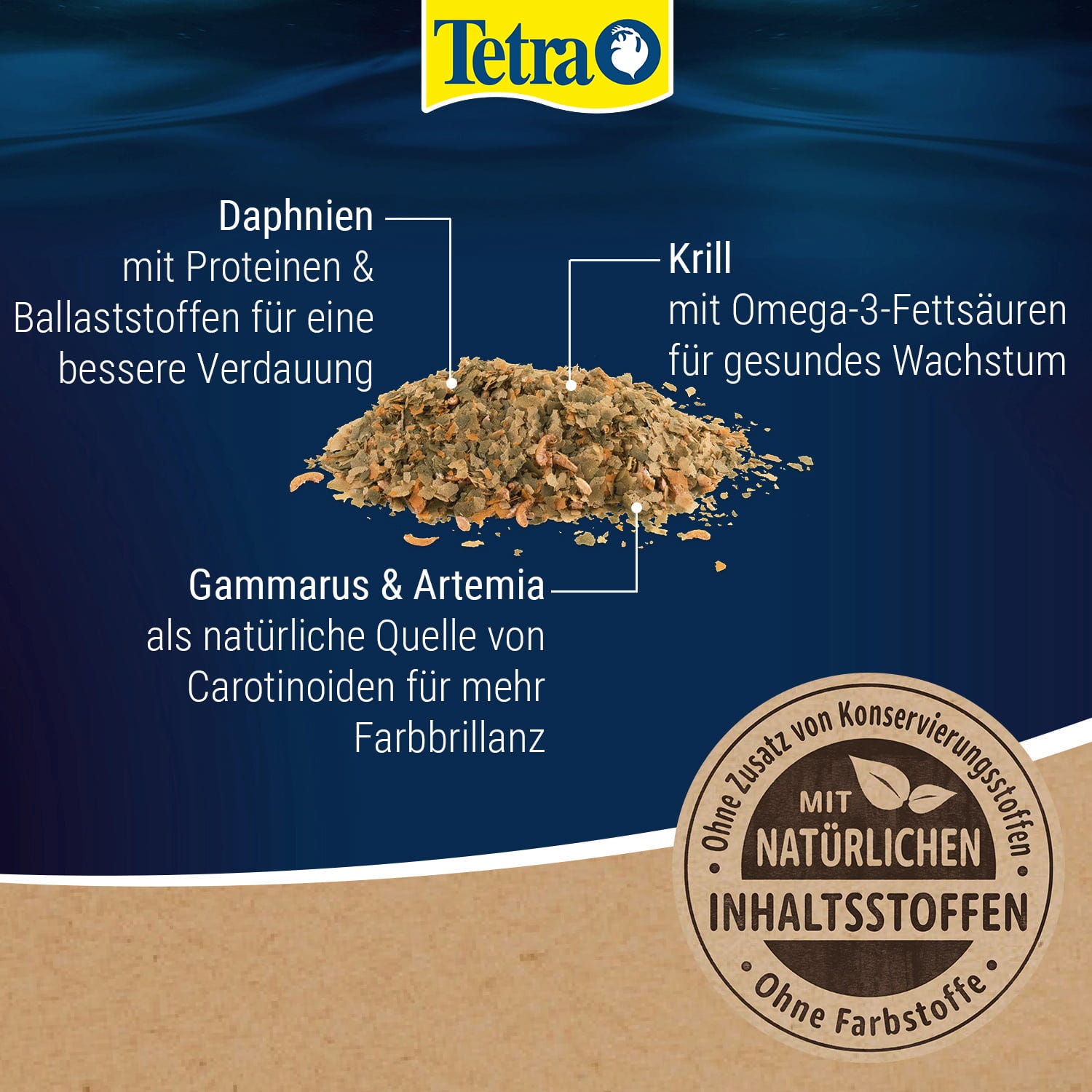 Das TetraDelica Mix ist eine Flockenfuttermischung mit Gammarus, Salinenkrebsen, Daphnien und Mückelarven angereichert. Getrennt in 4 verschiedenen Kammern.
