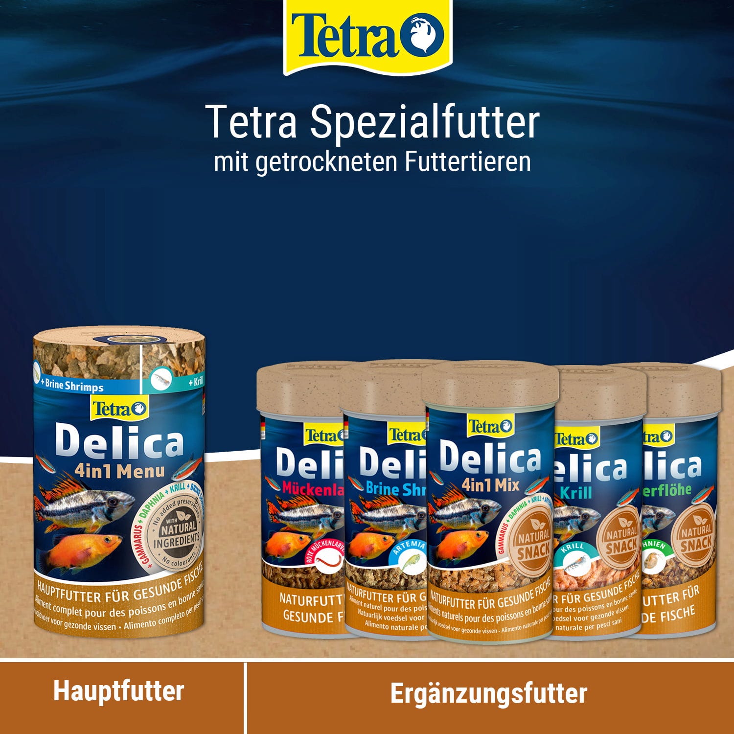 Tetra Delica Menu ist ein Hauptfutter, das mehrmals täglich in solchen Portionen, wie die Fische in wenigen Minuten verzehren können, gefüttert werden kann. Das Mindesthaltbarkeitsdatum auf der Verpackung zeigt den Zeitpunkt an, bis zu dem das Futter verschlossen und fachgerecht gelagert unverdorben bleibt. Um Abwechslung auf den Speiseplan der gepflegten Fische zu bringen ist das regelmäßige Verfüttern von Tetra Fresh Delica zu empfehlen.