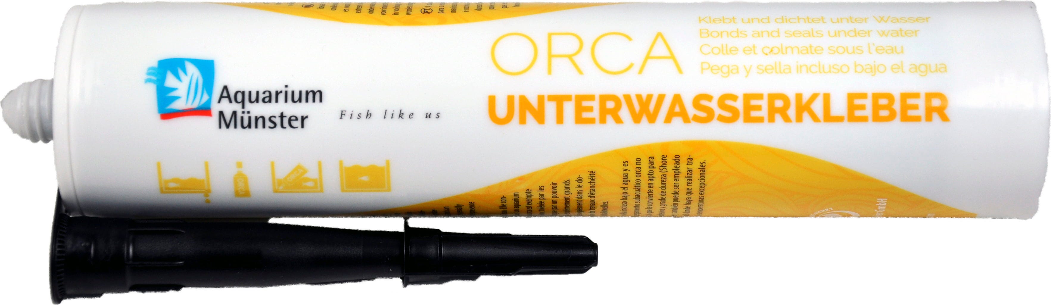 L'adhésif permet de colmater les aquariums ou les bassins de jardin et de fixer des objets décoratifs. Avec un pouvoir adhésif extrêmement élevé et un degré de dureté supérieur à 56 Shore A, l'adhésif sous-marin ORCA lie presque tous les matériaux et peut également être utilisé dans le secteur industriel, en particulier lorsque des travaux d'étanchéité sont effectués en milieu humide ou à des températures élevées.