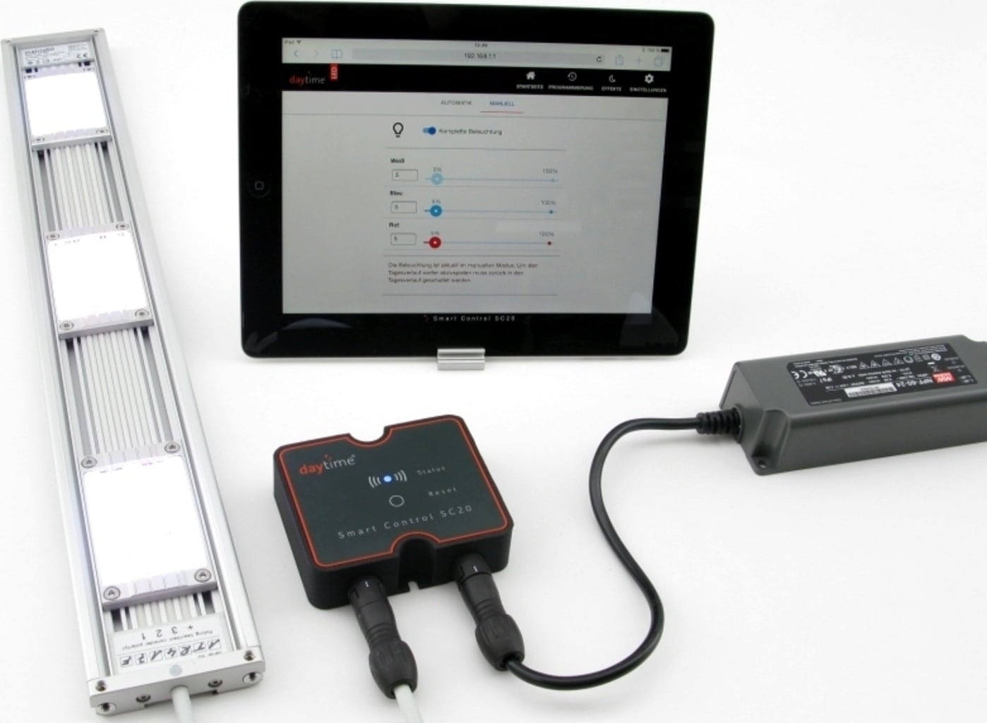 Avec le Smart Control SC20, vous pouvez recréer des conditions lumineuses naturelles dans votre aquarium grâce à des réglages jour et nuit. L’éclairage se programme et se contrôle facilement depuis un smartphone, une tablette ou un ordinateur. Il suffit pour cela d’une connexion Wi-Fi et d’un navigateur Internet de votre choix.