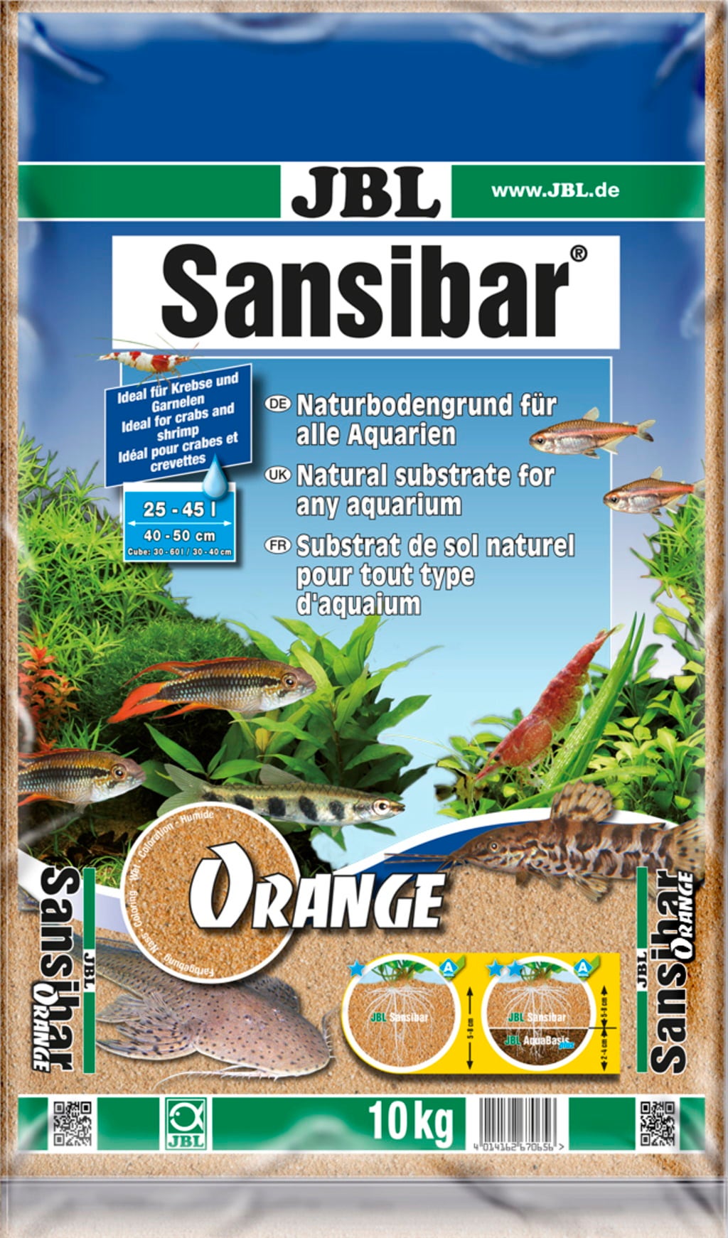 Le JBL Sansibar Orange est un sable fin de couleur orange, d’une granulométrie de 0,2 à 0,6 mm, adapté aux aquariums d’eau douce et d’eau de mer, ainsi qu’à une utilisation en terrarium.