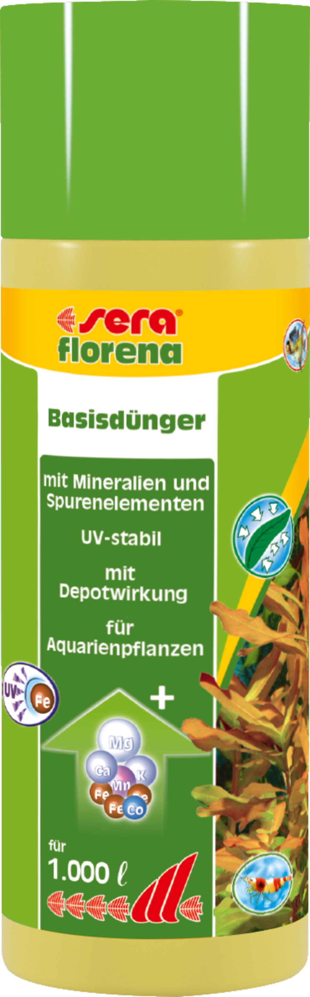 SERA florena est un engrais liquide qui contient des minéraux et des oligo-éléments importants pour une croissance optimale des plantes d'aquarium. Un engrais de base particulièrement adapté aux plantes aquatiques qui préfèrent absorber leurs nutriments à travers le feuillage.
