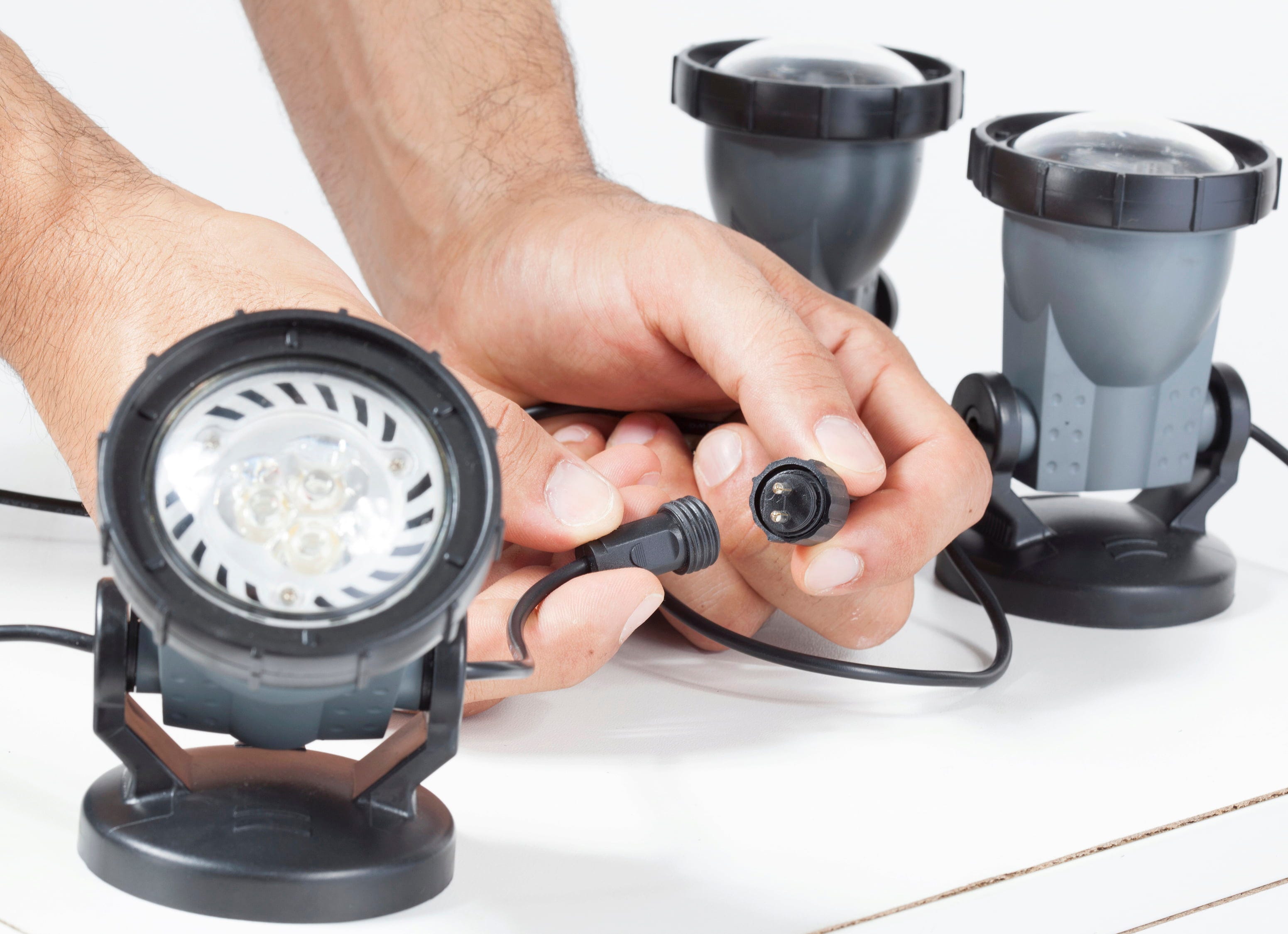 3 lampes de bassin avec câble de raccordement de 7 m entre le transformateur et la lampe