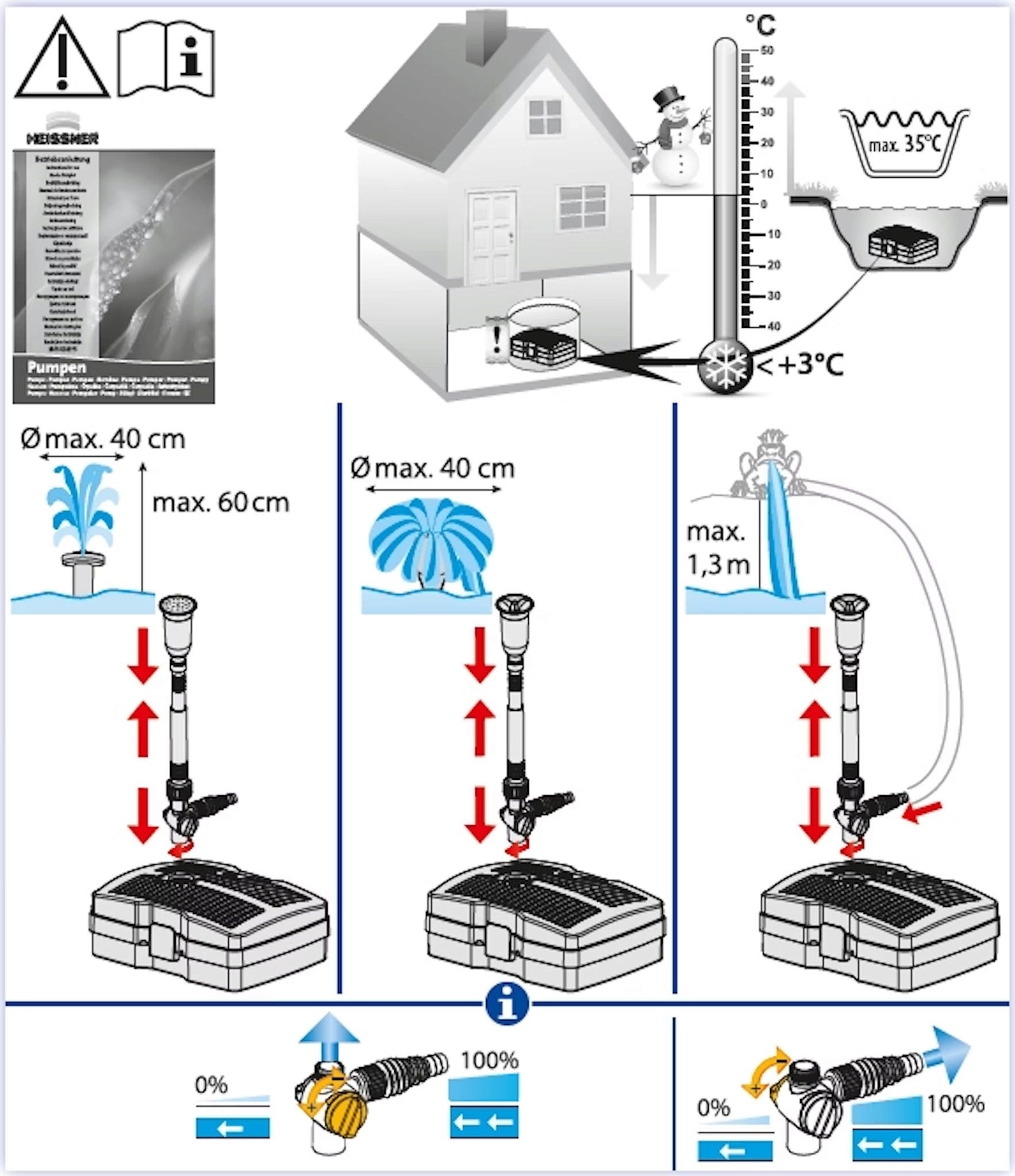 - Débit de la pompe : 2 000 l/h