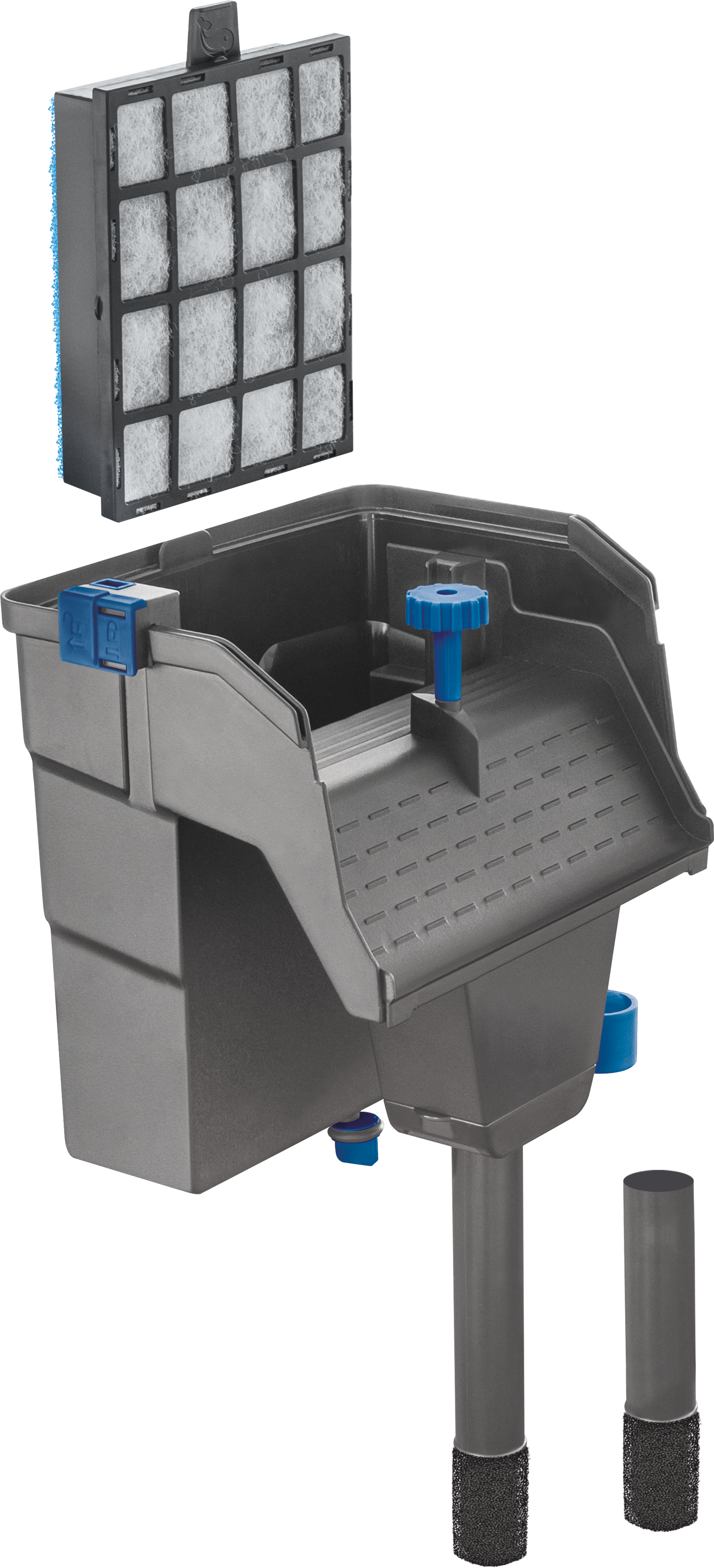 L’installation du filtre est simple grâce à son design de démarrage rapide et à sa pompe auto-amorçante. Même après une coupure de courant, la pompe redémarre immédiatement, ce qui offre une sécurité supplémentaire. Le débit peut être réglé avec précision grâce au dispositif de régulation du flux. Un indicateur d’entretien intégré vous informe lorsqu’il est temps de remplacer la cartouche. De plus, le filtre est équipé d’un large trop-plein en cascade et d’une fente spéciale qui garantit une oxygénation optimale de l’eau.