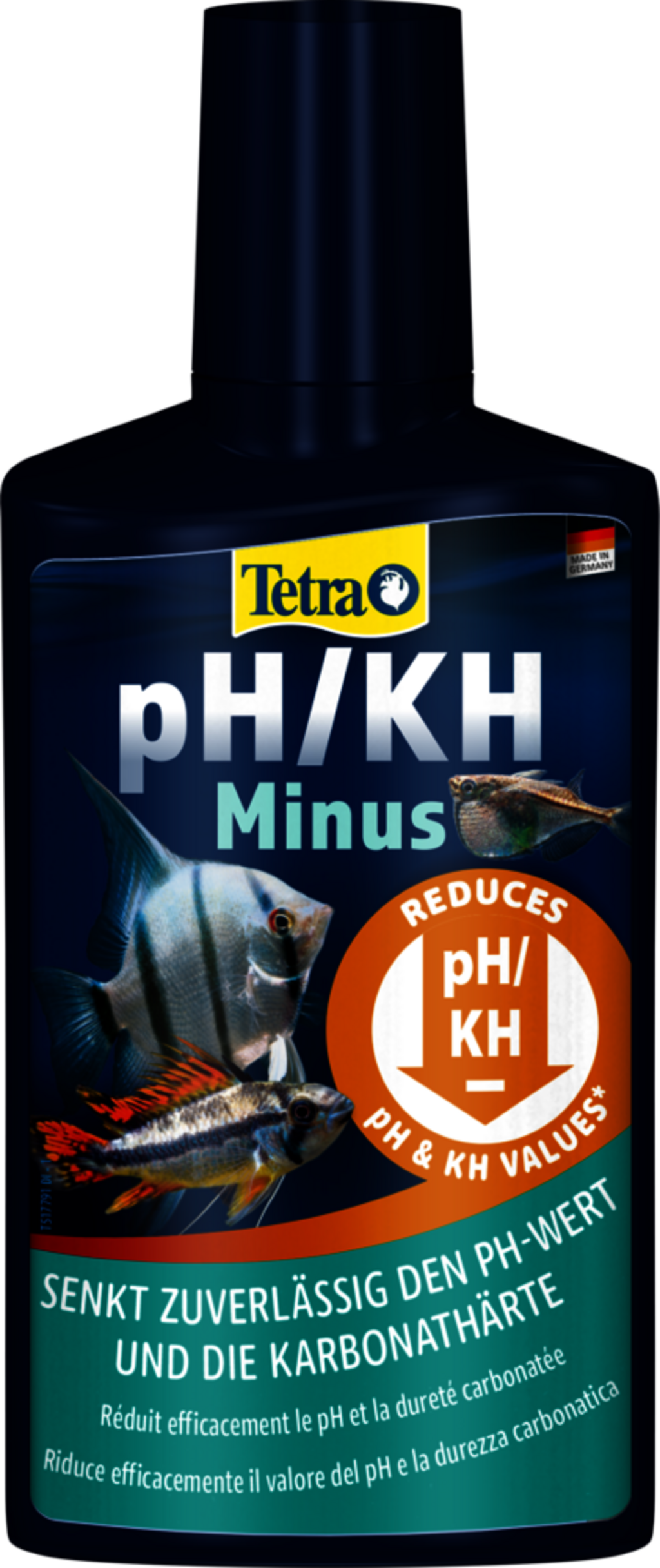 Tetra pH/KH minus permet une réduction précise et contrôlée de la dureté carbonatée dans les aquariums d'eau douce et d'eau salée.