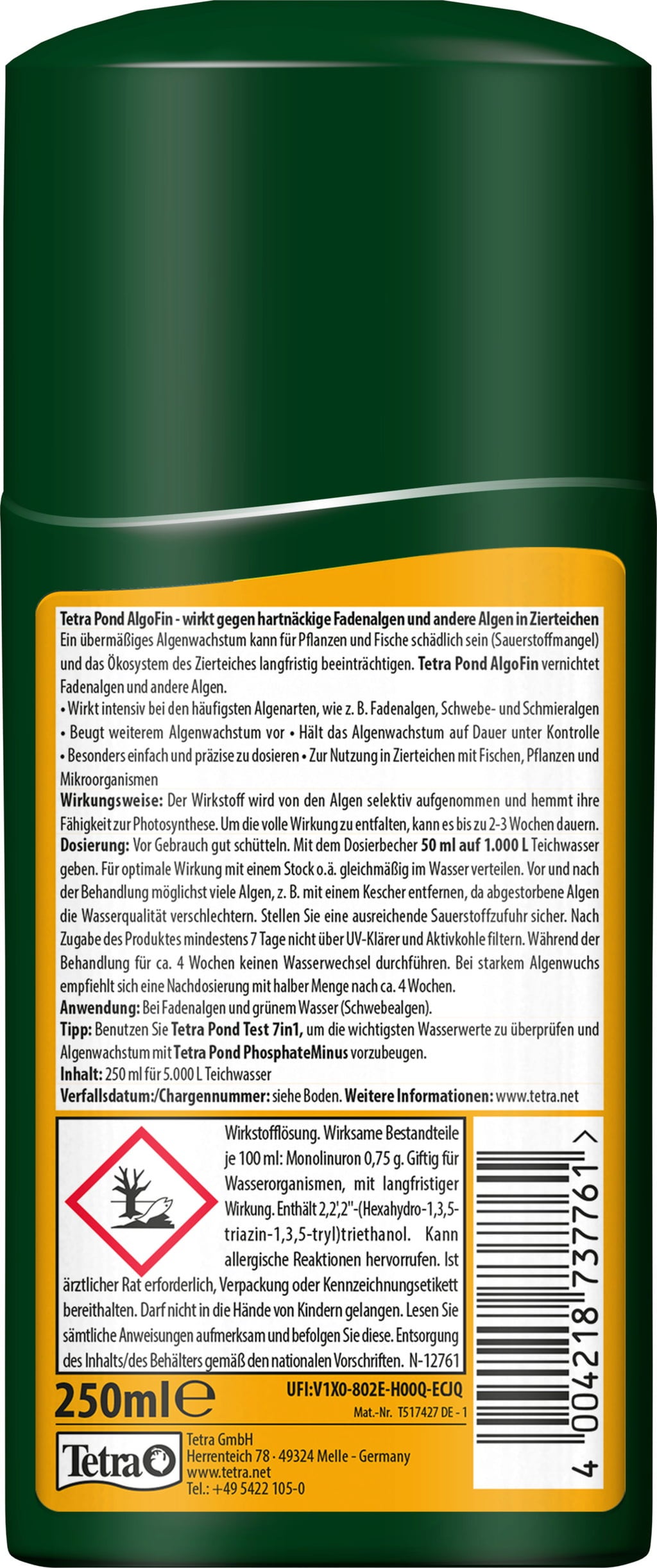 Pond AlgoFin de Tetra élimine efficacement les algues filamenteuses, en suspension et visqueuses les plus tenaces dans les bassins de jardin. AlgoFin agit directement sur l’organisme et le métabolisme des algues, inhibant leur capacité de photosynthèse.