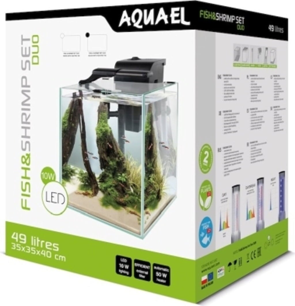 Met de Fish&Shrimp Set Duo van AQUAEL heb je in een handomdraai een modern nano-zoetwateraquarium! De praktische set is volledig uitgerust en bevat alles wat je nodig hebt: