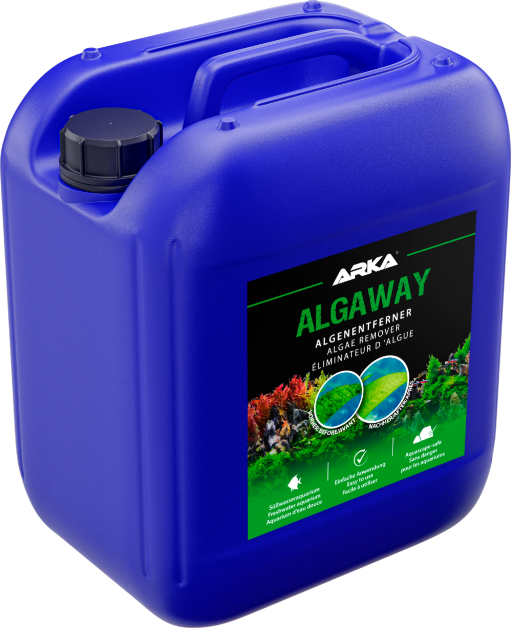 Algaway van ARKA is een speciaal ontwikkelde algenverwijderaar voor gebruik in zoetwateraquaria. Het stopt de groei van bestaande algen door het verwijderen van voedingsstoffen, dringt ze terug en voorkomt zo duurzaam hun regeneratie.