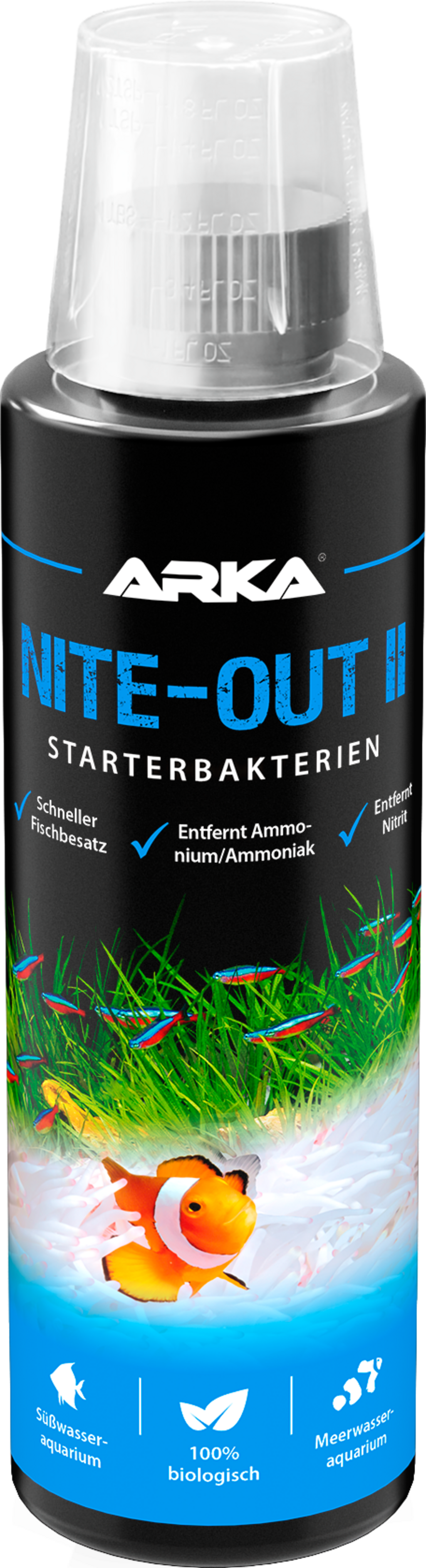 Nite-Out II is perfect voor het opzetten van het aquarium, waterverversing en ander onderhoud. Het bevat een sterk geconcentreerd bacteriemengsel dat ammonium, ammoniak en nitriet betrouwbaar afbreekt en de nitrietpiek aanzienlijk wordt verminderd.