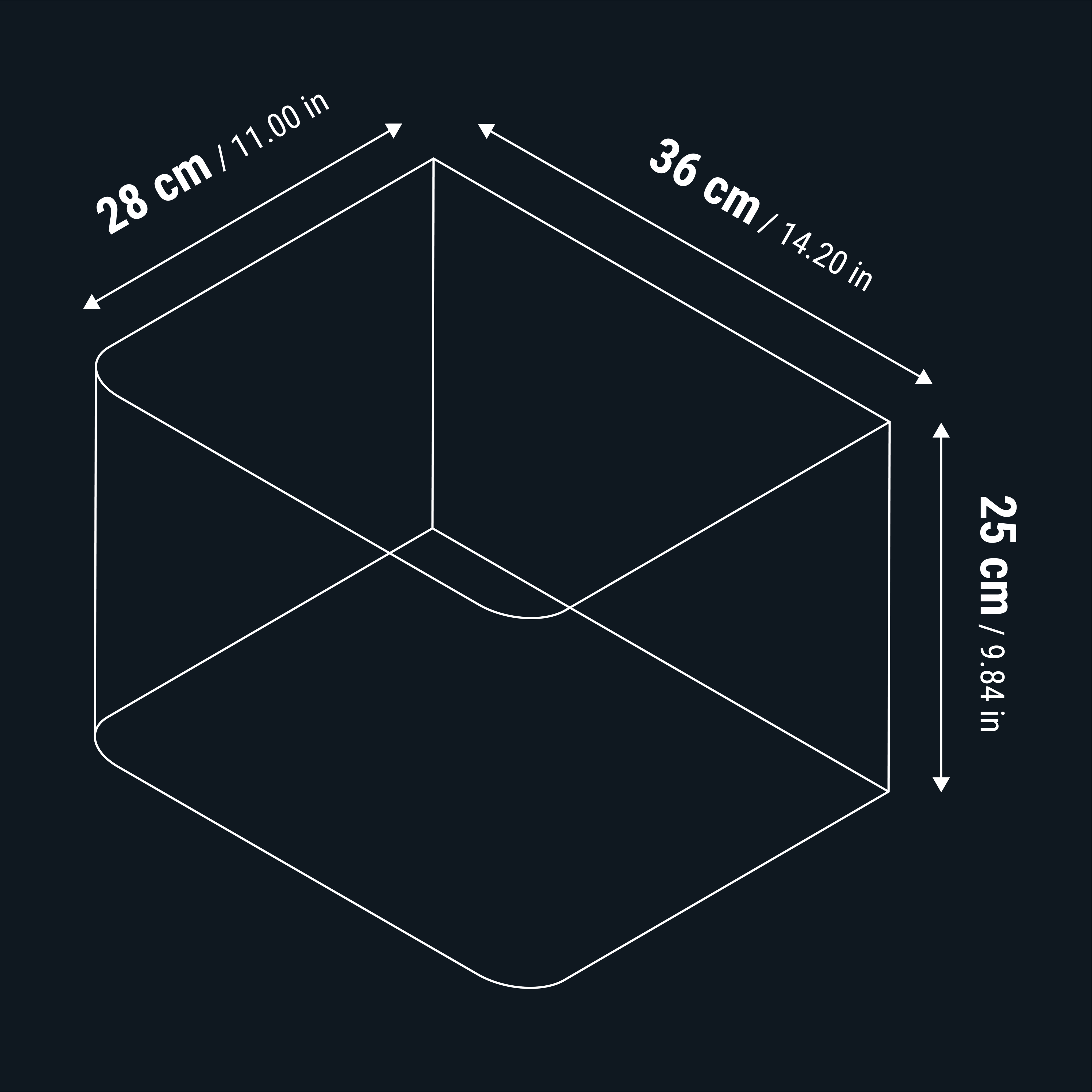 - 25 liter: 28 x 36 x 25 cm