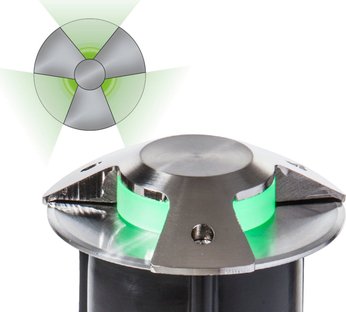 Deze HEISSNER afdekking van roestvrij staal maakt een gerichte lichtsturing mogelijk door het licht te bundelen in gedefinieerde lichtkegels in drie richtingen. Een geïntegreerde acryldiffuser zorgt daarbij voor een bijzonder gelijkmatige en zachte lichtverdeling, waardoor verblindingseffecten buitenshuis effectief worden geminimaliseerd. Dankzij het meegeleverde montagemateriaal kan de robuuste afdekking eenvoudig op de bodeminbouwspot worden bevestigd om architectonische details of tuinpaden stijlvol te accentueren.