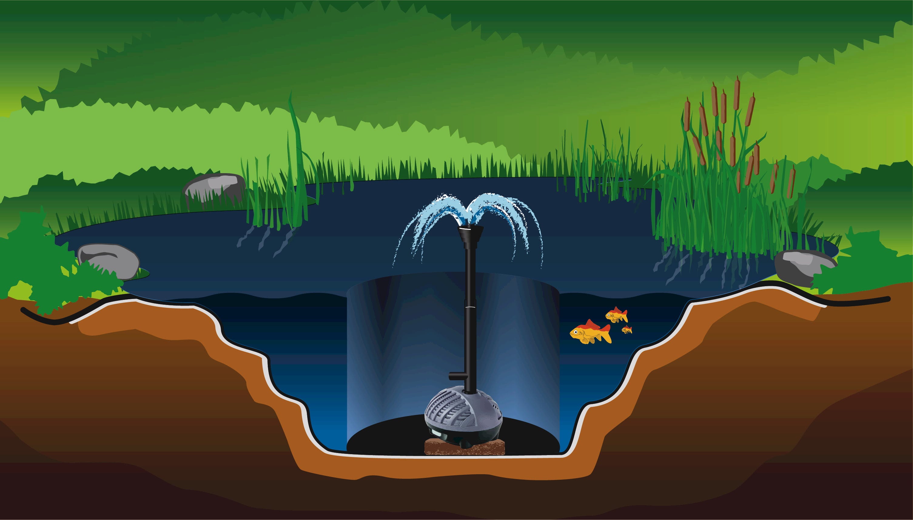 Vijverpomp met een spuithoogte van 275 cm