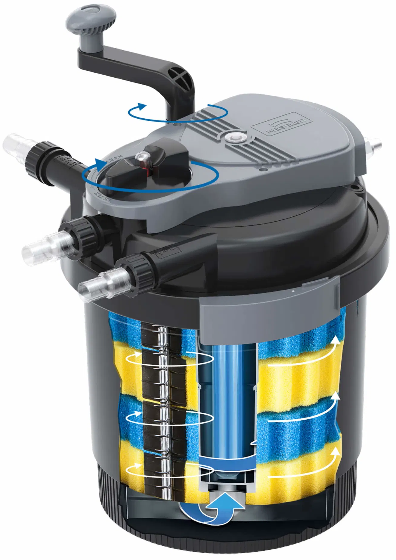 • Drukfilter met UVC-klaringsunit (11 W) & terugspoelfunctie