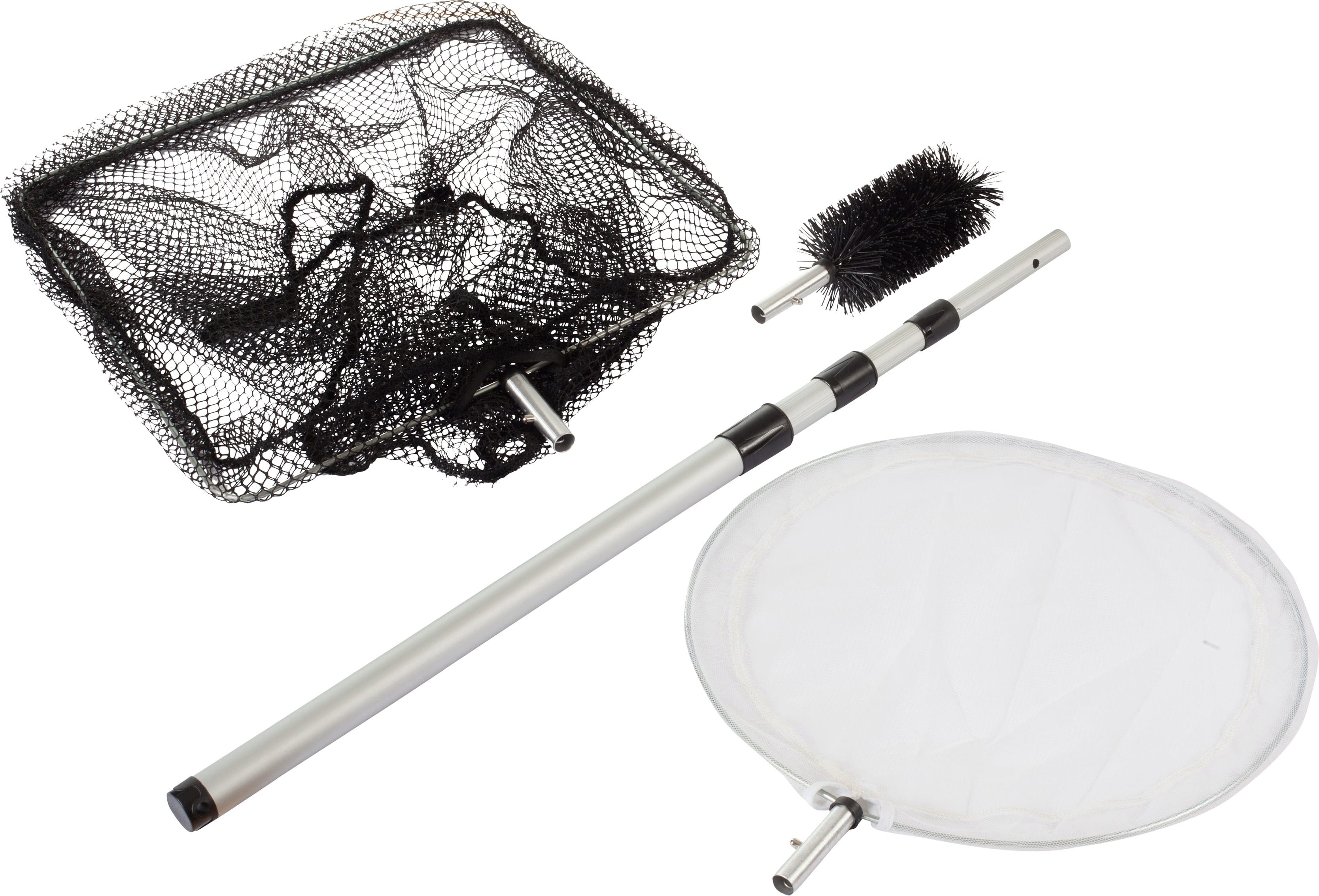 De HEISSNER 3-in-1 reinigingsset is de ideale oplossing voor het snelle en eenvoudige onderhoud van kleine tot middelgrote vijvers en zwembaden. Met drie gespecialiseerde opzetstukken en een variabele telescopische steel heb je voor elke vervuiling het juiste gereedschap bij de hand. Of het nu gaat om drijvende bladeren, algenaanslag op de wanden of grove verontreinigingen – deze set bundelt de belangrijkste helpers in één pakket.