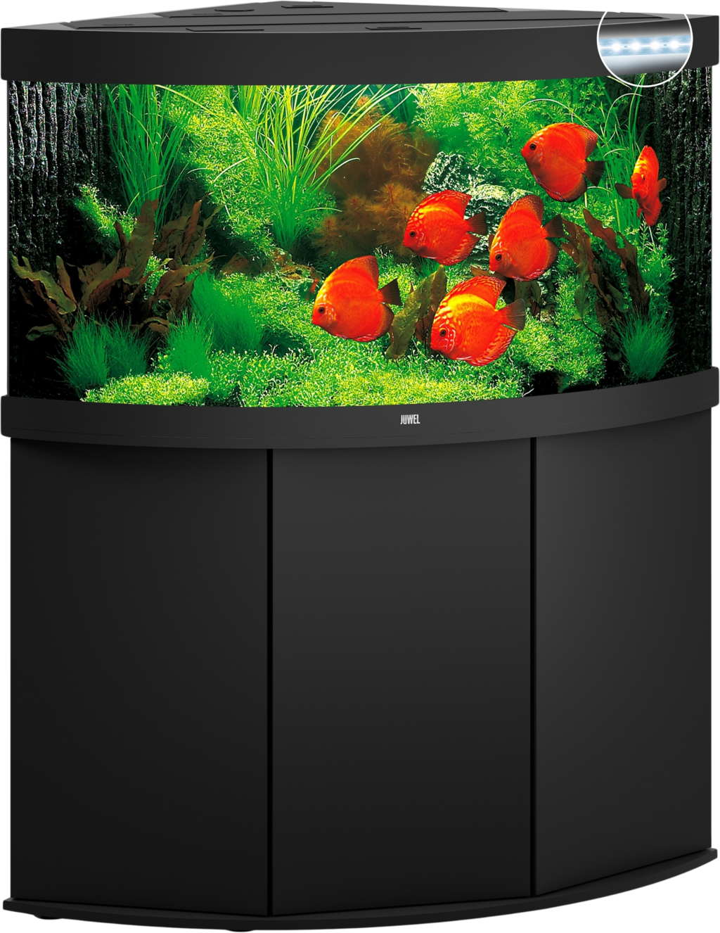De Juwel TRIGON 350 LED-aquariumcombinatie met onderkast is perfect geënsceneerd: dankzij het diepte-effect in een indrukwekkende vorm past de TRIGON 350 LED harmonieus in elke hoek van de kamer en creëert hij een oase van rust voor jouw en je hele gezin! Met zijn bijzondere diepte van 87 cm en de gebogen voorruit in elke hoek, evenals de uitrusting van vier tl-buizen, schittert de TRIGON 350 LED en is hij geschikt voor grote vissen en zeedieren.