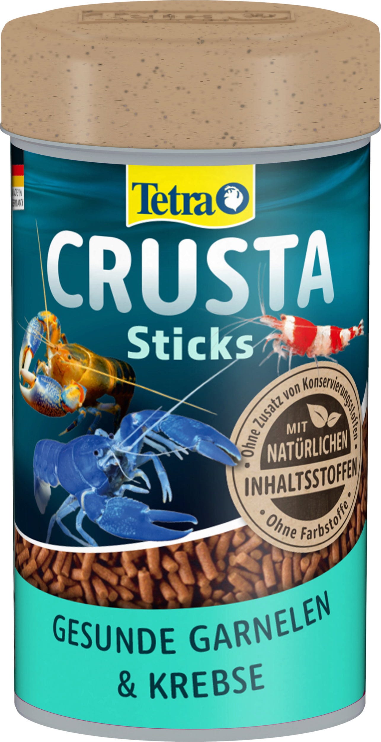 Tetra Crusta Sticks zijn snel vallende sticks. De sticks, verrijkt met een zeer hoog percentage tarwekiemen, zorgen voor een uitgebalanceerde voeding voor rivierkreeften en garnalen. Door hun vormvastheid maken ze een natuurlijk voedingsgedrag mogelijk en vervuilen ze het water niet. Optimaal gehalte aan eiwitten en mineralen zorgen voor een gezonde voeding. De weerstand wordt versterkt door plantaardige ingrediënten en essentiële vitamines.