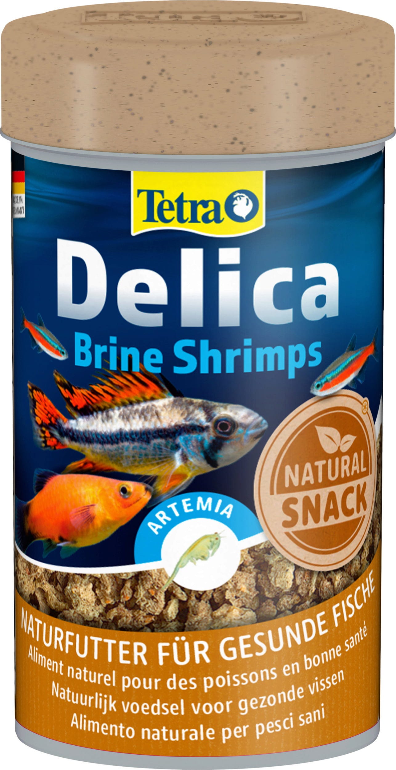 De Tetra Delica Artemia is een natuurlijke voeding voor alle siervissen in zoetwateraquaria. Het wordt gekenmerkt door het hoge gehalte aan voedingsstoffen en carotenoïden om de kleuren van de vissen op natuurlijke wijze te versterken.